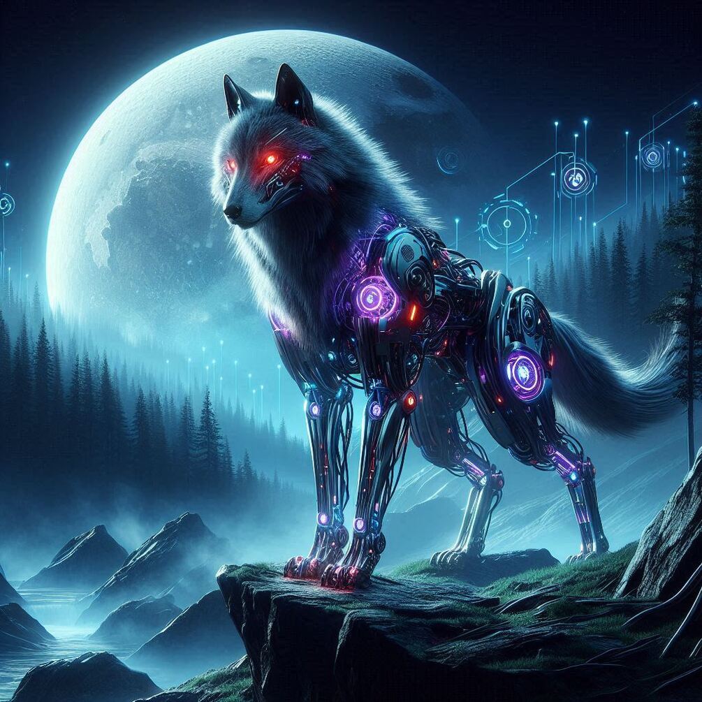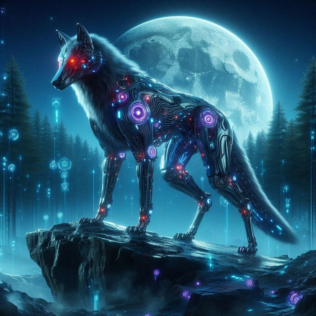 #Cyberpunk #SciFiArt #DigitalArt #NeonAesthetic #CyberWolf #AIArt #Futuristic #GlowingWolf #Cybernetic #Moonlit #FantasyArt #TechWolf #Synthwave